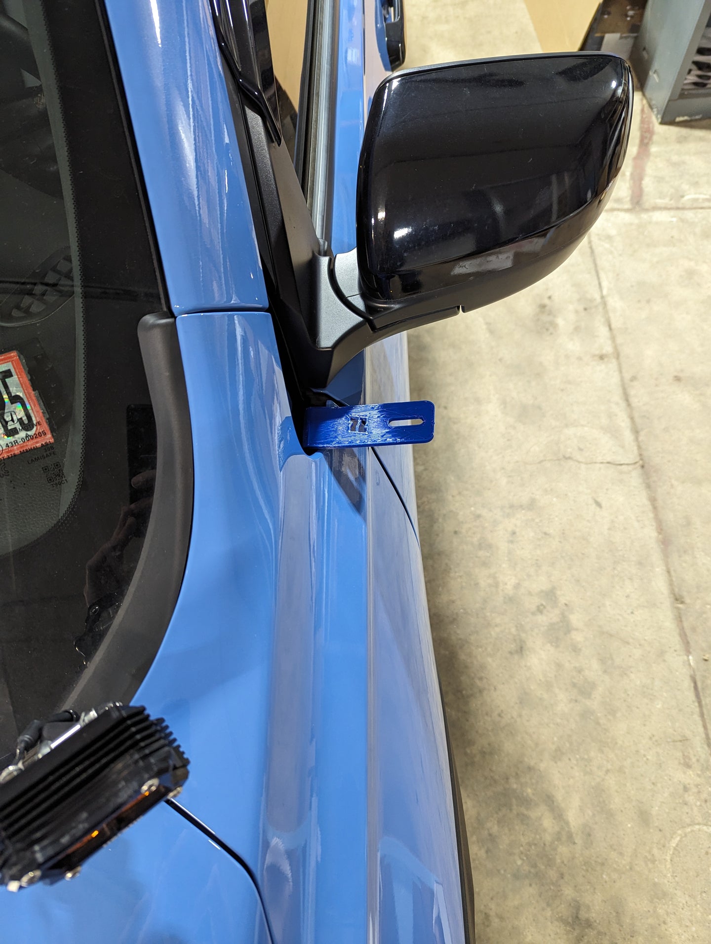 Mirror brackets come as a single or pair, made out of 10 gauge Stainless Steel and coated in a textured black powder coat finish. Brackets are compatible with most standard pod style lights. These brackets can be used for antennas and more. In order to mount these brackets the plastic panel around them must be trimmed.
